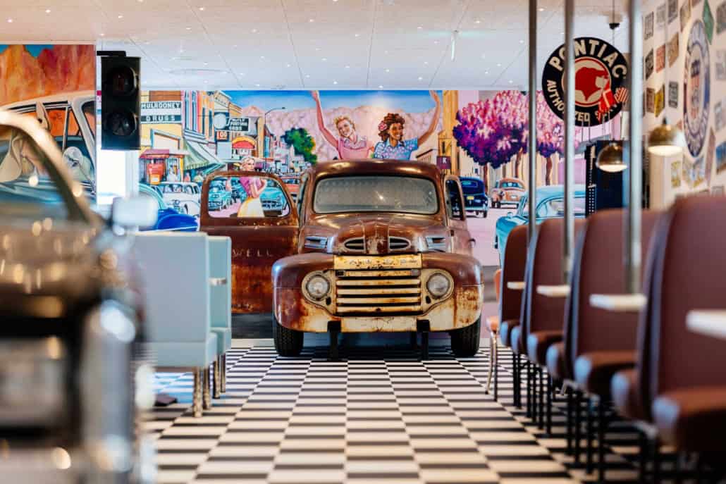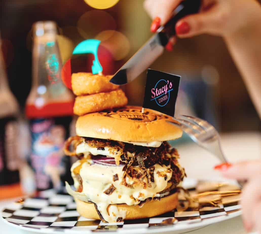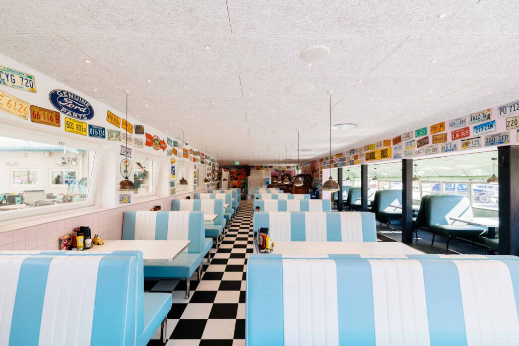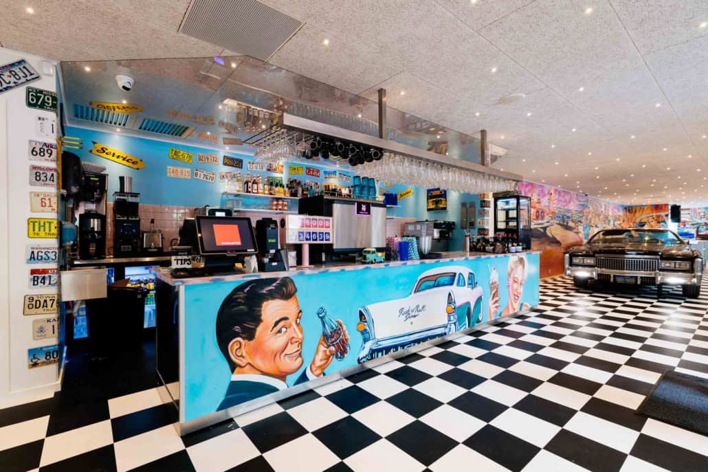 Forbered dig på et historisk vingesus af kaliber, når du træder indenfor hos Stacy’s Diner. Det er en tidslomme i yderst gennemført stil, hvor hver en detalje er nøje udvalgt til 50’ernes amerikanske dinermiljø, og det er nærmest umuligt ikke at blive blæst bagover af begejstring.