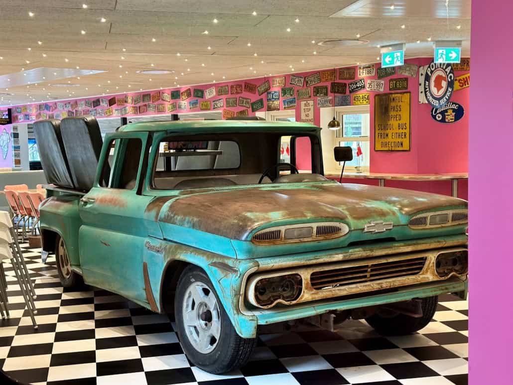 Træd ind i en farverig 50’er-tidslomme med skakternet gulv, klassiske booths, neonstemning og detaljer overalt. Hos Stacy’s Diner føles det ikke bare som at spise ude – det føles som at være med i en amerikansk film.