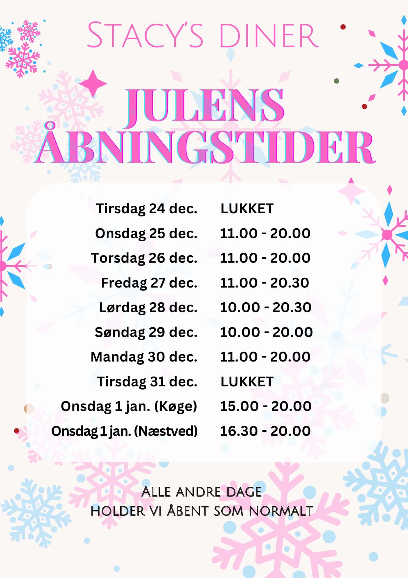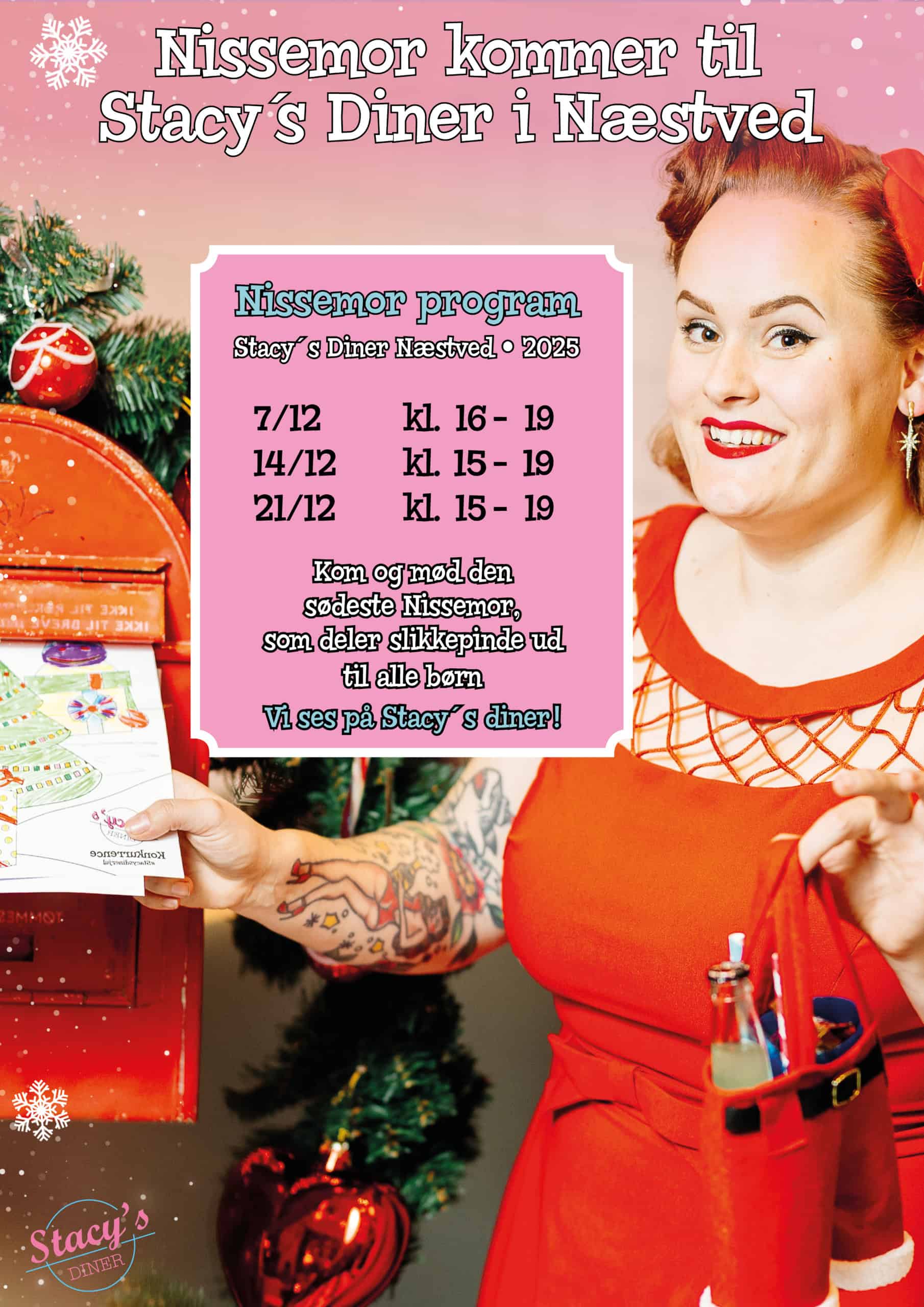 Oplev ægte julemagi på Stacy´s. fra d. 13. november til d. 30. december 2025. Vi forvandler dineren til et sandt juleparadis – med kæmpe juleudsmykning, en sprød juleburger og masser af julehygge.